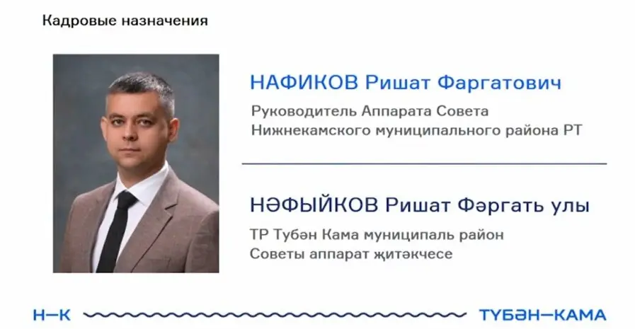 Ришат Нафиков назначен новым руководителем аппарата Совета Нижнекамского муниципального района.