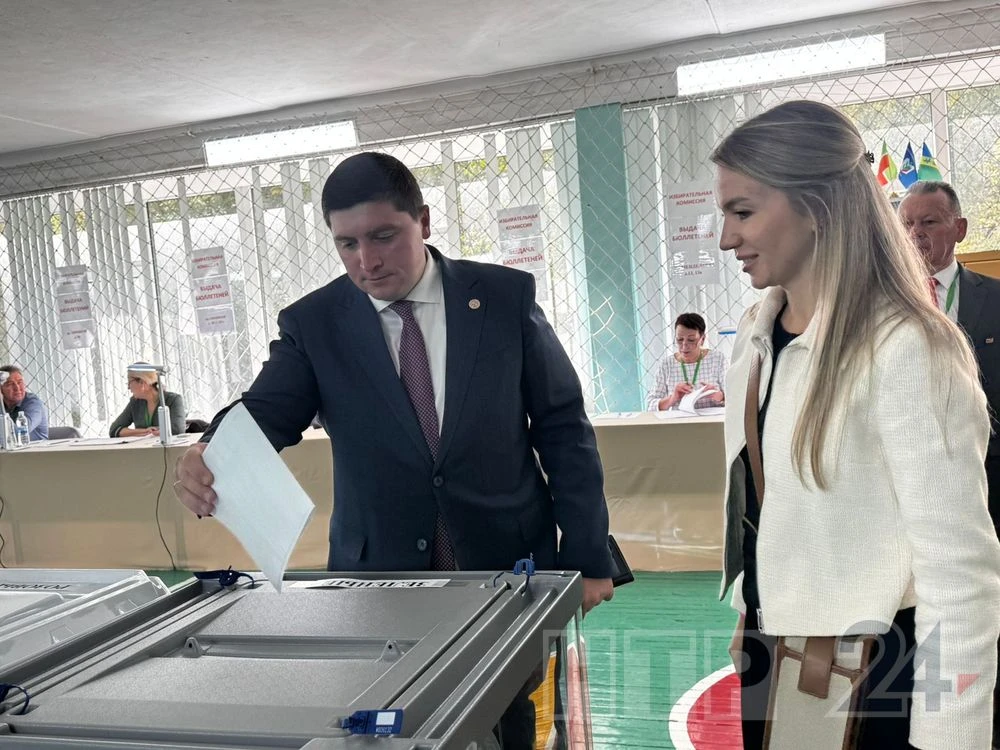 Вместе с супругой он отдал свой голос на избирательном участке в гимназии № 22.