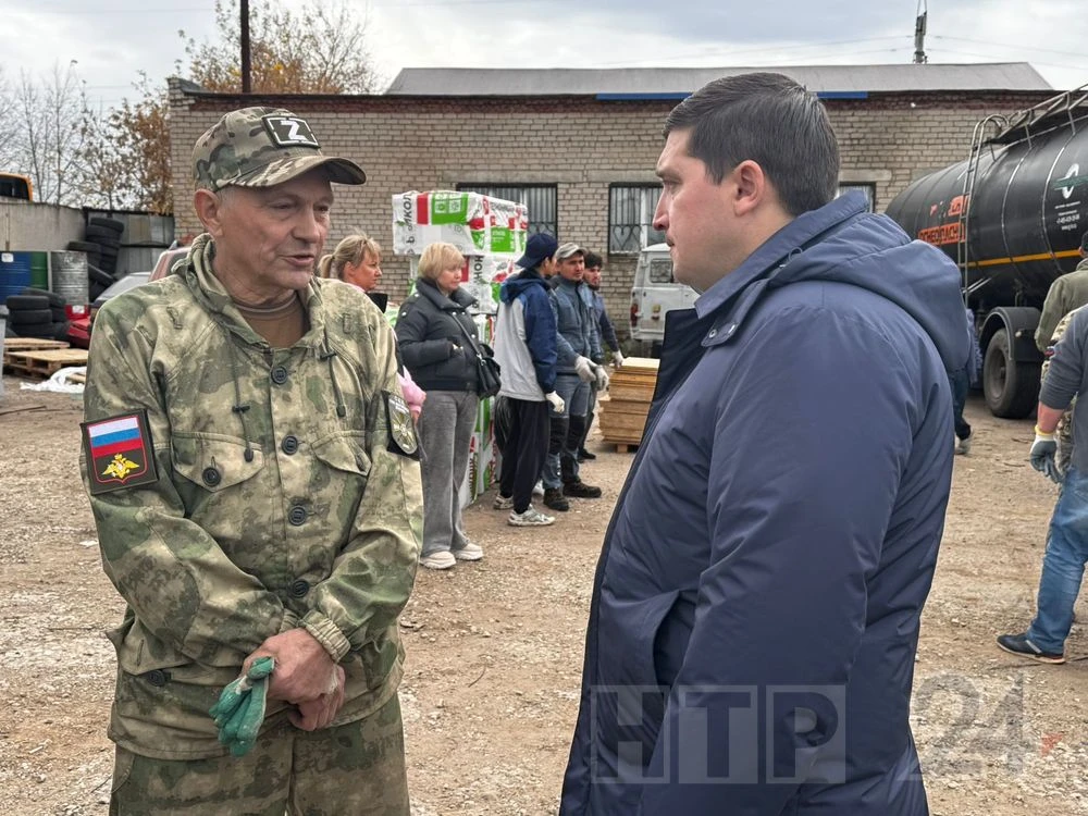 Пункт отправки груза посетил мэр Нижнекамска Радмир Беляев и пообщался с волонтёрами.