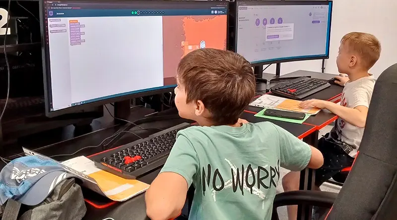 В ходе первого занятия дети познакомились с понятиями алгоритма и визуального программирования, а также в игровой форме попробовали себя в программировании.