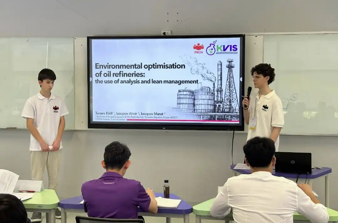 Ученики лицея № 24 — Кирилл Тураев (11 класс) и Альмир Юсупов (10 класс) — вместе с учителями подготовили проект на тему: «Экологическая оптимизация нефтеперерабатывающих заводов: использование анализа и принципов бережливого управления». В рамках проекта получилось в рамках моделировании ректификационной колонны сократить выбросы углекислого газа в воздух на 25% и сократить потребление электроэнергии на 15%.