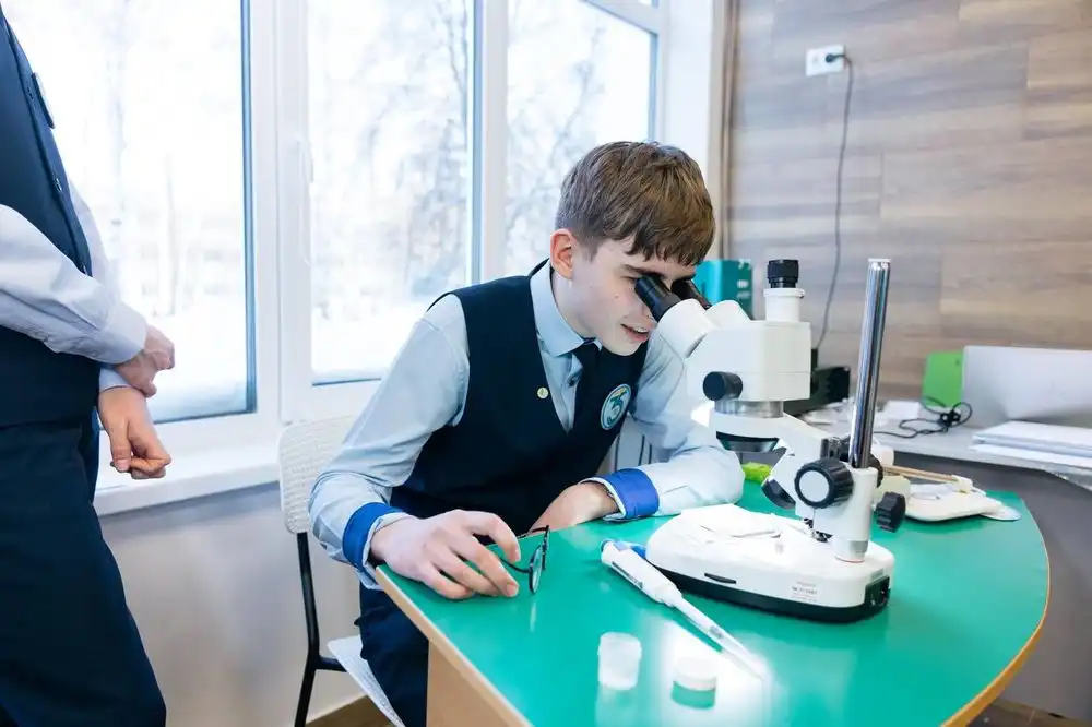 Одним из самых ярких событий в ДЭБЦ стали практические занятия с микроскопами. Эксперты «ПолиЛаб НК» продемонстрировали детям работу «невидимых сотрудников» биологических очистных сооружений (БОС) — активного ила.