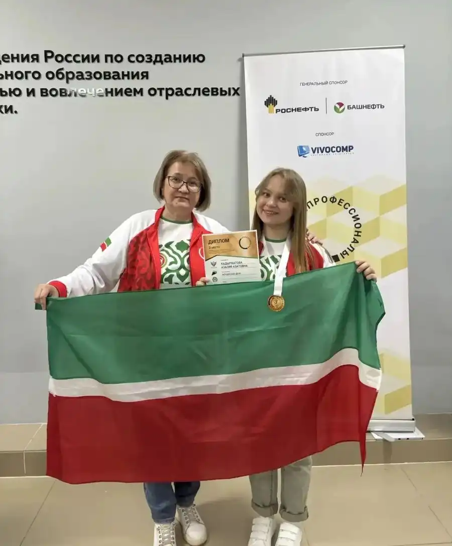 Также бронзу «взяла» студентка первого курса специальности «Лечебное дело» Елизавета Яушева под руководством эксперта-наставника Ландыш Галлямовой.