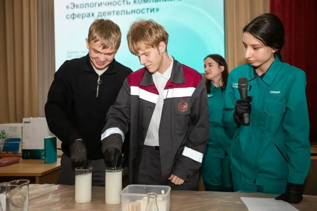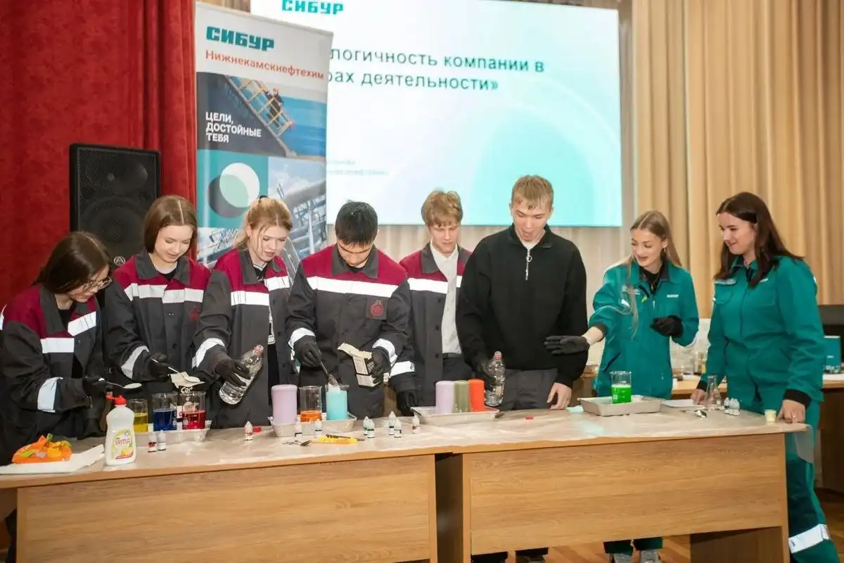 Экологи и химики нижнекамского предприятия СИБУРа не только рассказали и показали, как стать экологичнее, но и научили студентов проводить «большие» опыты – те самые химические процессы, которые ежедневно проходят на реальном производстве, – в масштабах маленькой кухни.
