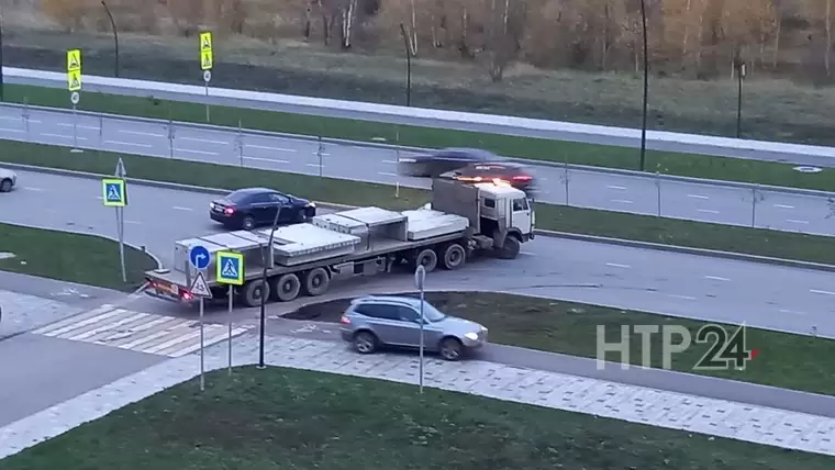 В Нижнекамске напротив дома № 27 по проспекту Шинников «КамАЗ» перекрыл проезжую часть.