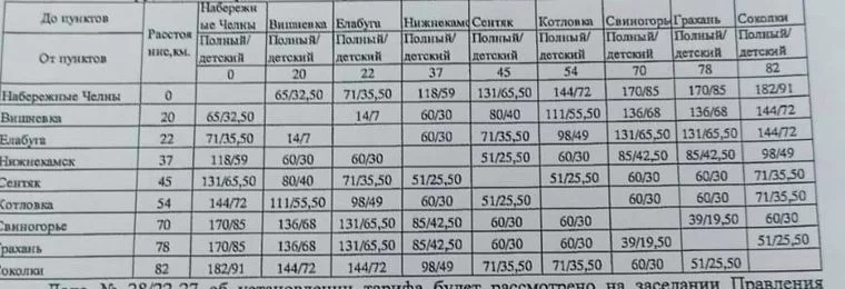 В этом году стоимость проезда выросла. Взрослый билет из Нижнекамска до Челнов обойдется в 118 рублей (+10 рублей), до Вишневки — в 60 рублей (было 55).