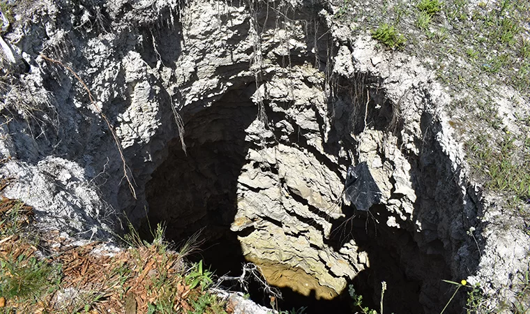 Глубокая воронка появилась на горе Соколка в Верхнем Услоне, и, по предварительным данным, её глубина составляет порядка 10 метров.