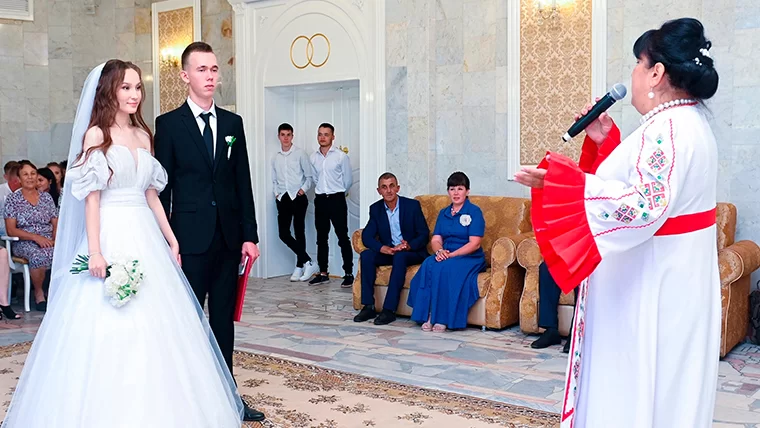 В Год национальных культур и традиций в Нижнекамске прошла торжественная регистрация молодой пары Дмитрия Леонтьева и Дианы Мокиной.