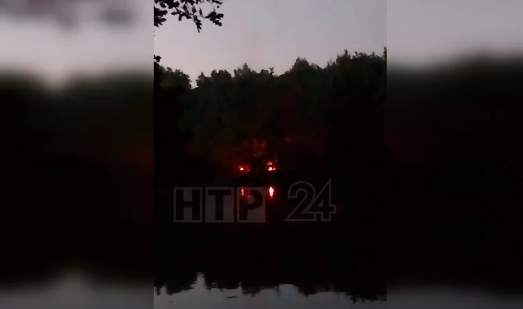 На записи видно, как на берегу озера достаточно близко к деревьям ярко полыхают два костра.