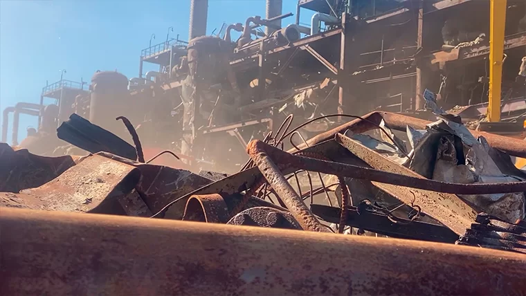 В промышленной зоне Нижнекамска полным ходом идёт демонтаж устаревшего оборудования.