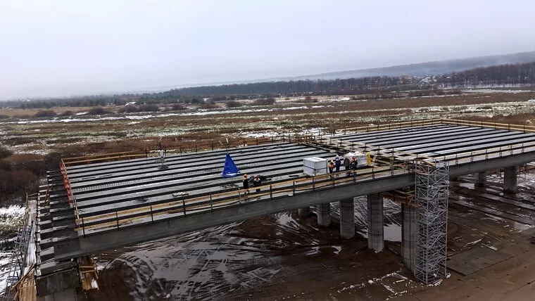 В этом году мостостроители планируют смонтировать четыре пролета, а сборка всего строения будет завершена в следующем году. Полная протяжённость моста составит 1,3 км – это самое крупное мостовое сооружение в рамках скоростного маршрута Казань – Екатеринбург.