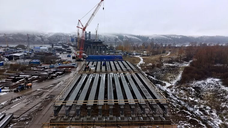 На обходе Нижнекамска и Набережных Челнов рабочие приступили к монтажу балок пролетного строения эстакадной части моста через Каму.