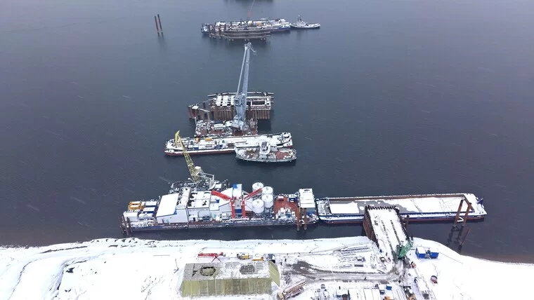 Отмечено, что пролетное строение будет состоять из двух частей. На русловой части оно будет цельнометаллической, собранную из 64 блоков.
