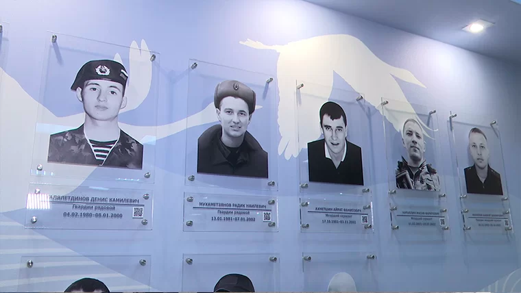 На ней имена и фотографии выпускников, которые отдали свою жизнь в Афганистане, на Северном Кавказе и в зоне спецоперации РФ на Украине.