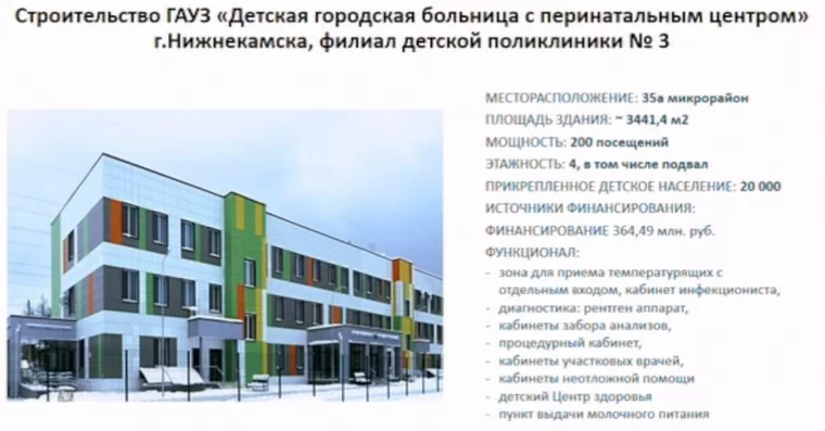 В 2024 году в Нижнекамске в микрорайоне № 35а начнется строительство детской поликлиники № 3.