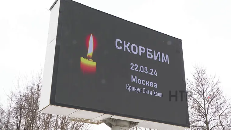В Нижнекамске на улицах города на медиа-экранах зажглась непотухающая свеча и надпись: «Скорбим, Москва 22.03.24».
