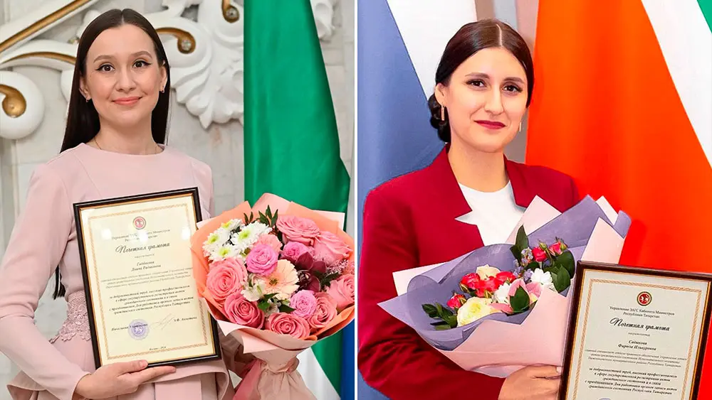 Главные специалисты отдела правового обеспечения управления ЗАГС Нижнекамского Диана Габбасова и Фирюза Садыкова удостоены почётной грамоты управления ЗАГС кабинета министров Республики Татарстан.