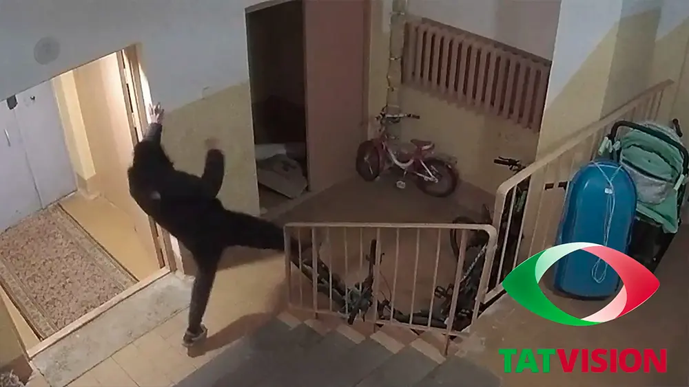 Запись с ним опубликовала компания «Татвижн». Инцидент произошёл ночью 23 января. На кадрах видно, как к велосипедам подходит злоумышленник и начинает их дёргать, после чего замечает камеру видеонаблюдения и, надев маску на лицо меняет, свои планы.