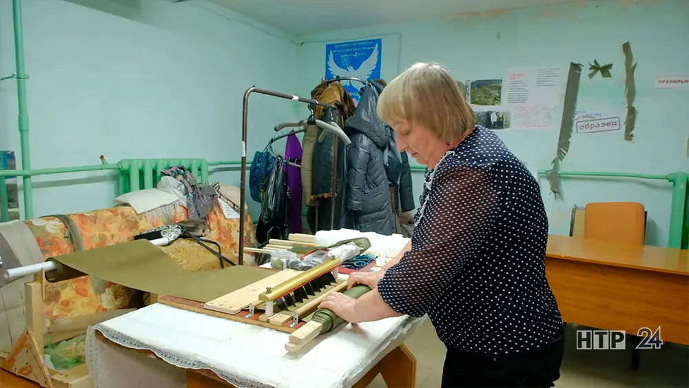 На территории храма работает настоящий цех по изготовлению маскировочных сетей. Расположен он в воскресной школе. Работа налажена, ведется ежедневно. За день волонтеры плетут по одной большой сети.