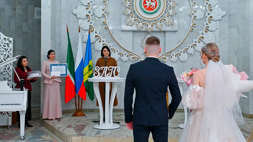 В нижнекамском Дворце бракосочетания состоялась торжественная регистрация брака участника специальной военной операции.