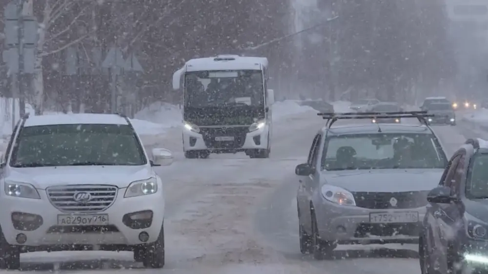На дорогах Татарстана наблюдаются снежные заносы в связи с обильными снегопадами.