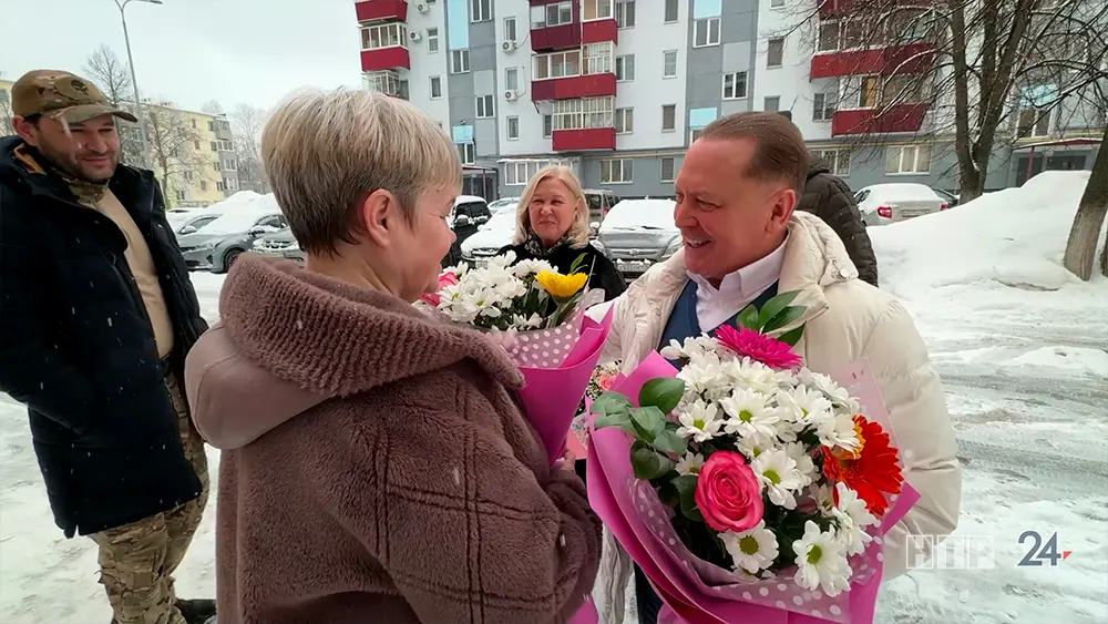 В Международный женский день он встретился с Эльвирой Гиззатуллиной и Ниной Токачевой. Депутат Государственной думы вручил им букеты цветов и теплые шали, которые согреют женщин в любую непогоду, а также уточнил, нужна ли женщинам какая-либо помощь.