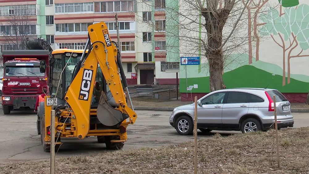 На территории второго дома ведутся работы по демонтажу дорожного покрытия и бордюров. Николай Ершов работает в этой сфере почти всю жизнь. За свою трудовую деятельность он помог благоустроить сотни дворов.