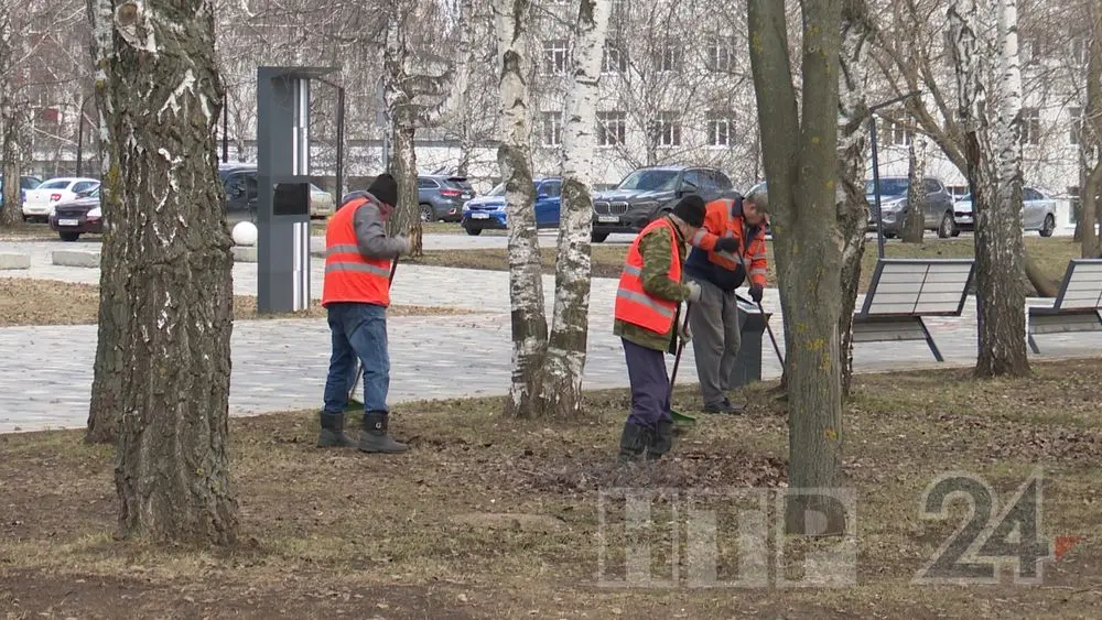 Наводить чистоту в парках и скверах Нижнекамска сегодня вышли пару десятков рабочих «Комплексного предприятия благоустройства». Коммунальщики собирают старую листву, опавшие ветки и готовят пространство к майским праздникам.