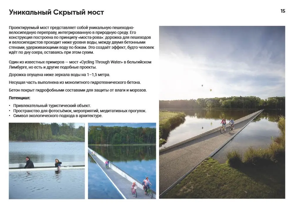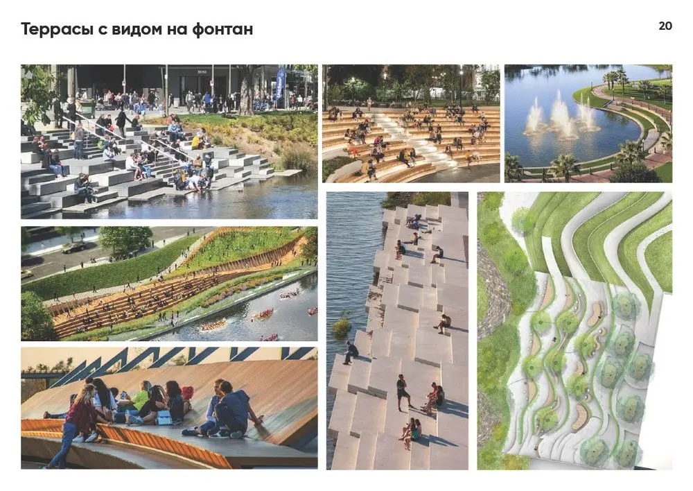 Озеро с набережной и скрытым мостом, террасы с видом на фонтаны, детский водный парк, ботанический сад — это лишь часть тех масштабных преобразований, которая представлена в предварительной концепции модернизации парка «Семья».