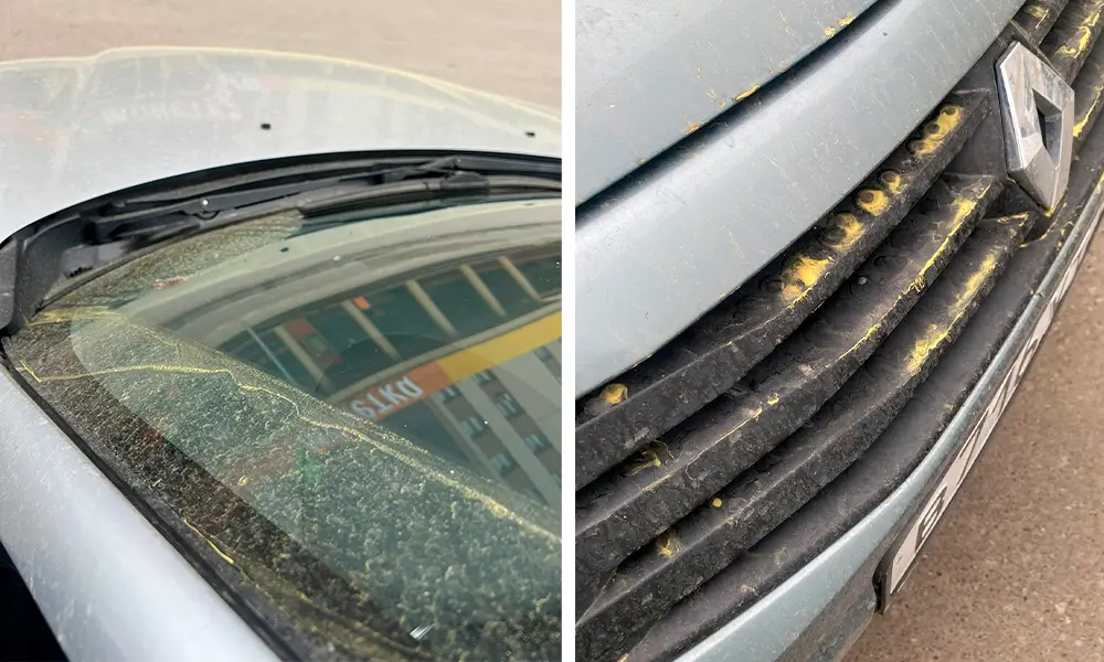 Сегодня утром жители Нижнекамска обнаружили на своих автомобилях желто-зелёный налёт неизвестного происхождения.