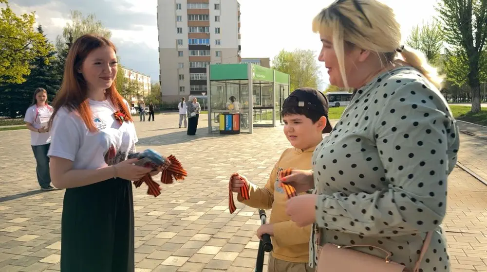 В Нижнекамске волонтеры раздают ленточки в самых оживленных местах города. Символ доблести, стойкости наших героев принято носить на груди слева в знак того, что подвиг советских солдат навсегда остался в сердце у потомков.
