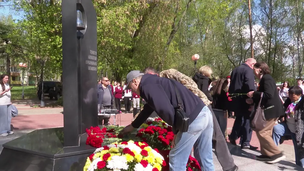 В память об участниках ликвидации аварии, ушедших из жизни, прошла минута молчания. Собравшиеся возложили к памятнику цветы.