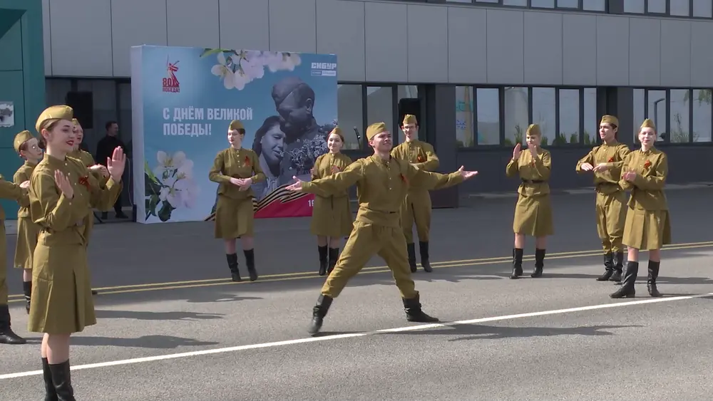 Сегодня работники предприятия вышли на импровизированную сцену, чтобы станцевать «Вальс Победы». Своим танцем они смогли воссоздать и передать атмосферу победного 1945-го.
