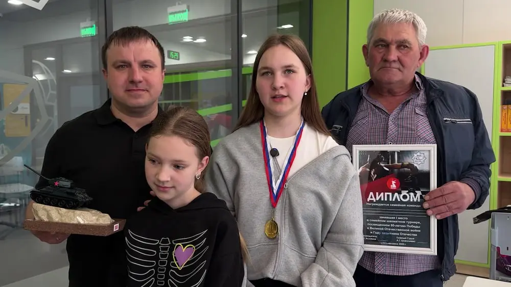 Участники семейного турнира были награждены медалями и ценными памятными подарками. А главный приз — уменьшенная копия танка Т- 34 из искусственного камня — достался семье Бариновых.