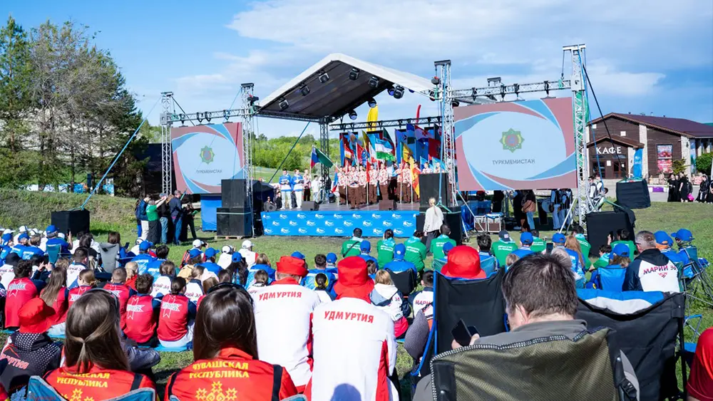 На поляне горнолыжного курорта «Хвалынь» прошла торжественная церемония открытия лагеря с участием творческих коллективов региона, включая коллективы вузов и ссузов, которые подготовили яркую концертную программу. Участники поделились, что активно готовились к соревнованиям на пешеходных маршрутах и рассчитывают показать высокие результаты.