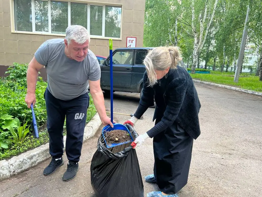 Сотрудники управления здравоохранения Нижнекамского муниципального района в завершение рабочей недели навели порядок на своей территории.