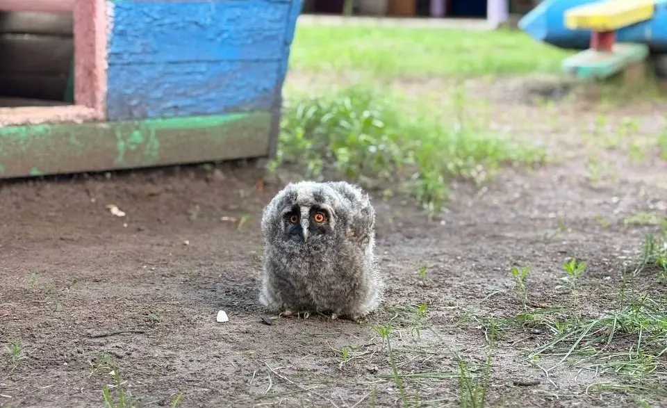 В Камских Полянах Нижнекамского района на территории детского сада заметили совенка. Птенец устроился на участке и внимательно наблюдал за всем вокруг.