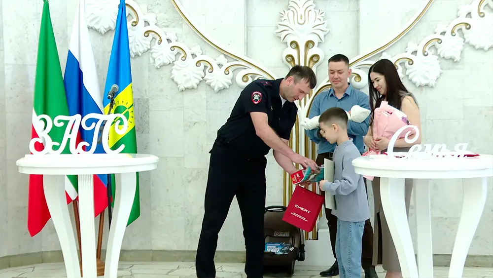Эмоций было много и на торжественной церемонии имянаречения в ЗАГСе. Она была приурочено ко Всемирному дню детей. Султановым вручили первый документ малышки. С этим знаменательным событием семью поздравил начальник отдела ГАИ по Нижнекамскому району Ильдар Ахметзянов.