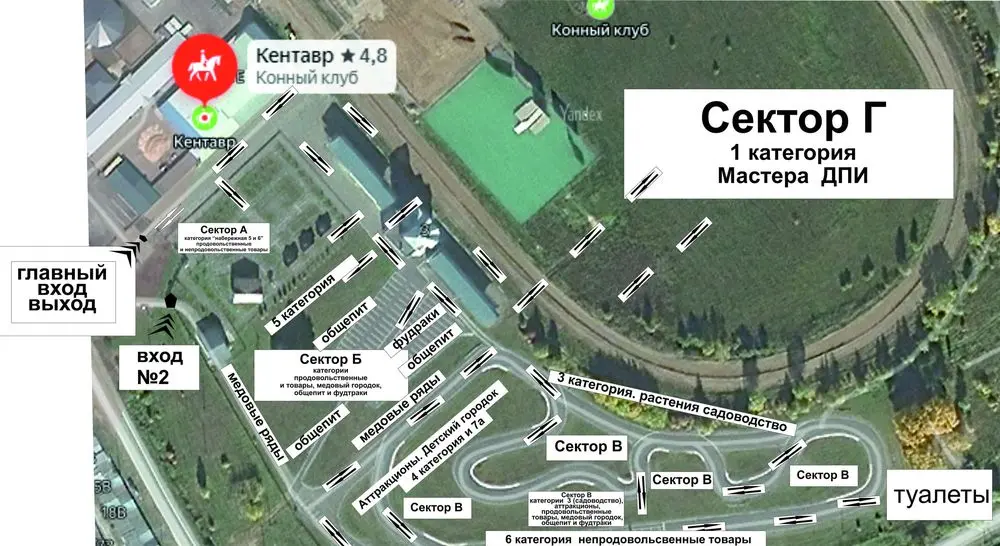 Судя по схеме, будет два входа: главный и дополнительный. Выход только один, через главный вход. Территория ярмарки разделена на сектора и категории.