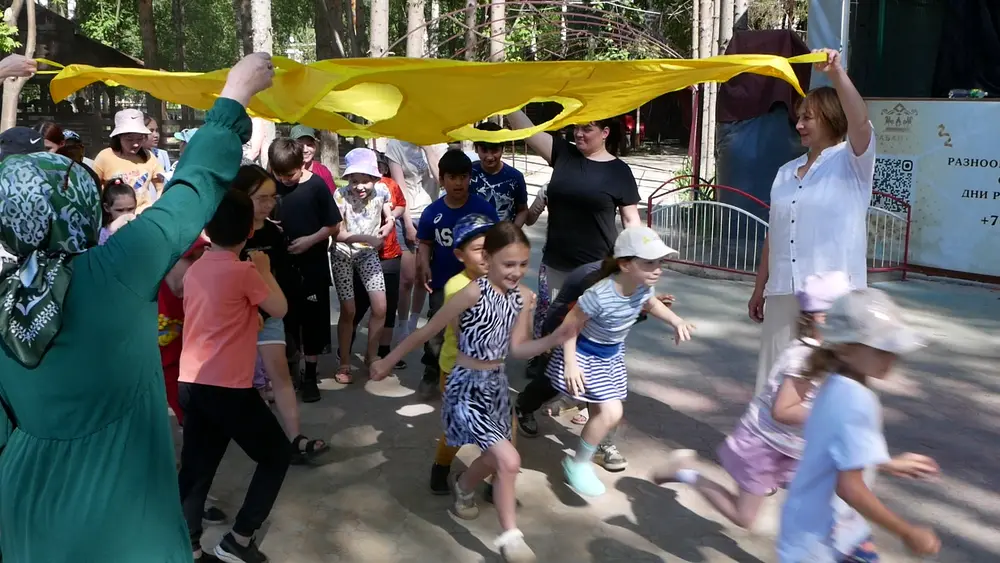 Масштаб мероприятия можно сравнить с детским Сабантуем: спортивные состязания, викторины, анимация и много детского смеха.