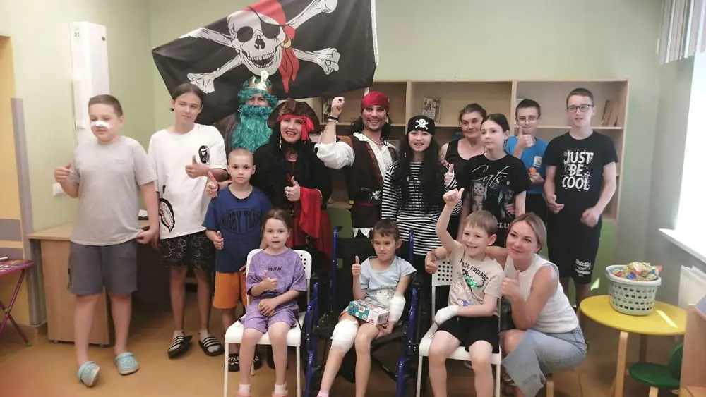 В празднике приняли участие персонажи в образах пиратов, включая Нептуна. Для пациентов провели интерактивную программу с играми, танцами и поиском «пиратского клада». В завершение мероприятия состоялось торжественное посвящение детей в «морские волки».