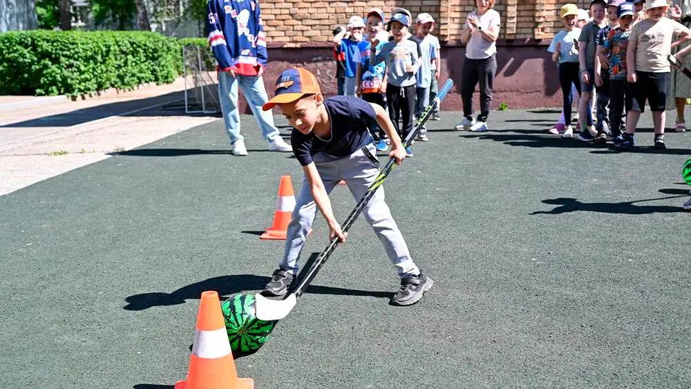 Спортсмены организовали для детей «Веселые старты» и мастер-класс по хоккею. Они показали, как правильно держать клюшку, бить по воротам и складывать хлопушку болельщика. Особый восторг у малышей вызвал конкурс, где нужно было из букв сложить название молодежной команды «Реактор».