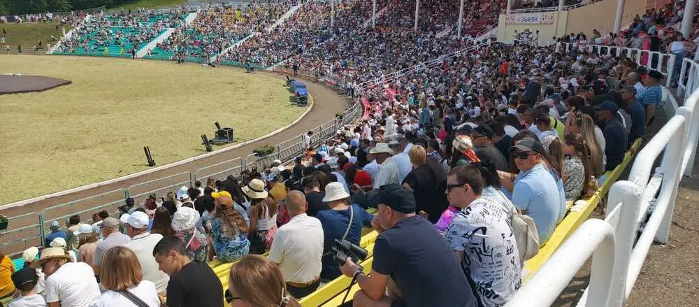 Тем временем на ипподроме развернулись показательные выступления конноспортивной школы, пони, ассоциации мотокросса и соревнования по аударыш — борьбе на лошадях.