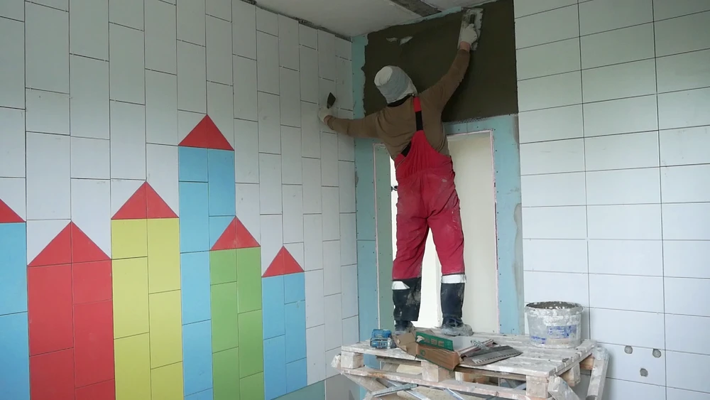 Зафар Икрамов кладет напольную плитку. С виду процесс несложный, но по факту здесь много нюансов, которые необходимо соблюдать. Одно из главных — правильно подготовить основание, говорит мужчина.