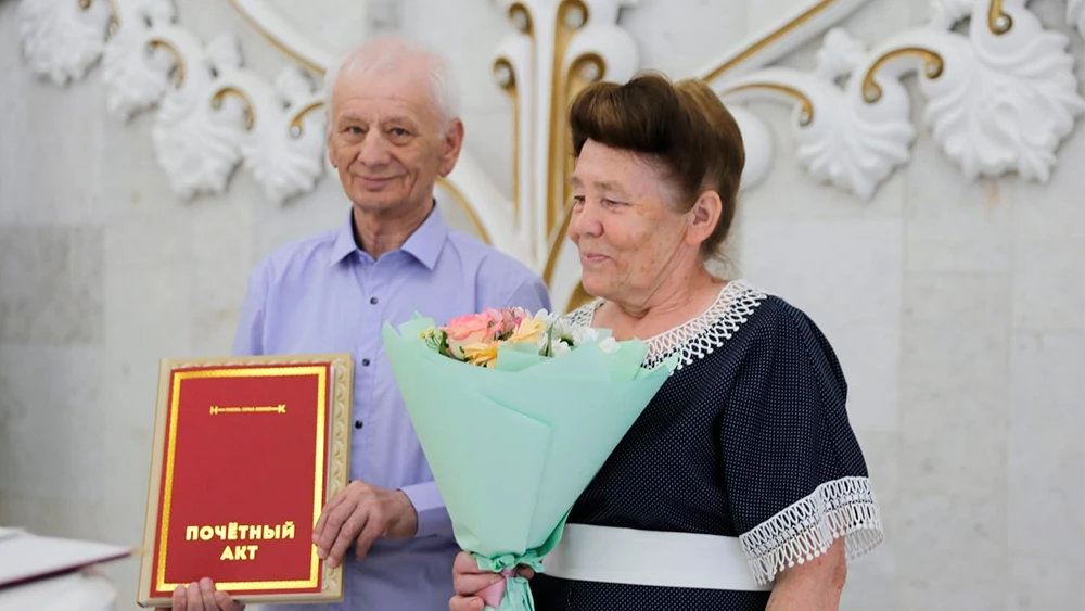 Торжественная церемония прошла в нижнекамском дворце бракосочетания, имена юбиляров занесены в Книгу почета.