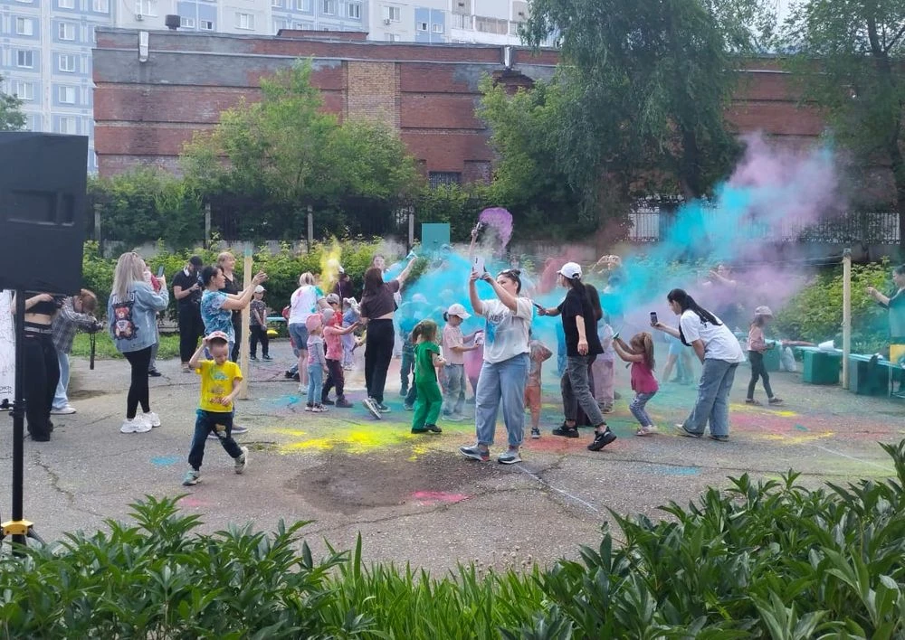 Особый восторг и у детей, и у родителей вызвали краски холли, которыми они забрасывали друг друга, окрашивая во все цвета радуги.