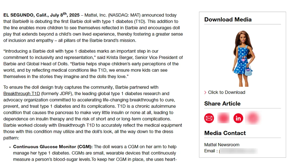 Американская компания Mattel впервые за свою историю представит куклу Барби с сахарным диабетом I типа. Новинка призвана помочь детям с этим заболеванием увидеть себя в любимой игрушке.