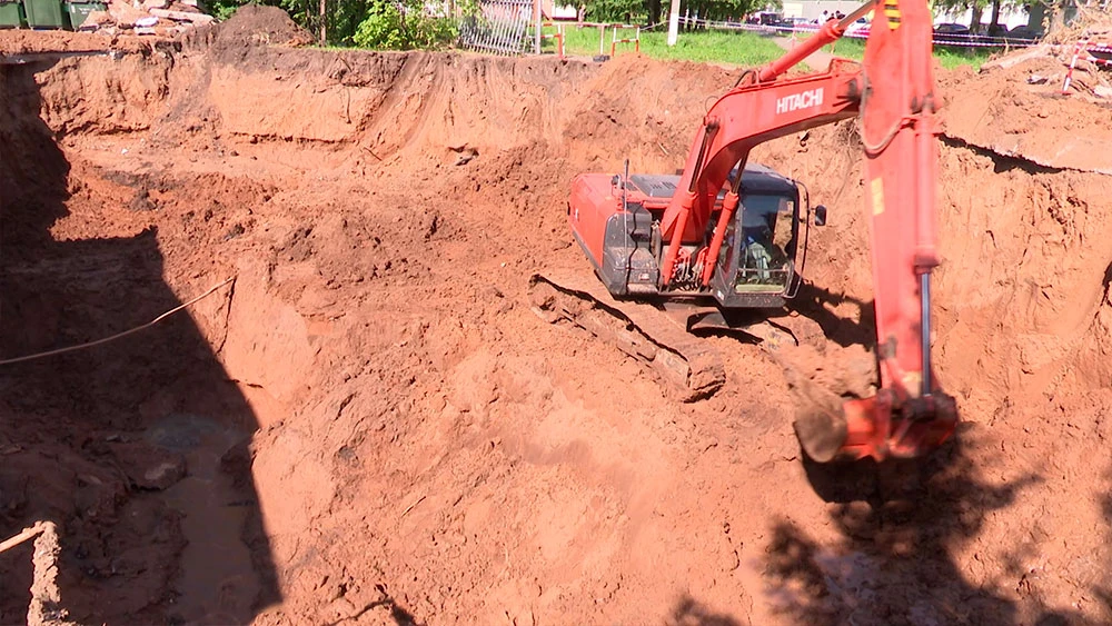 В Нижнекамске идут масштабные земляные работы по выявлению дефекта хозфекального коллектора рядом с торговым центром «Акчарлак», который залегает на 11-метровой глубине.