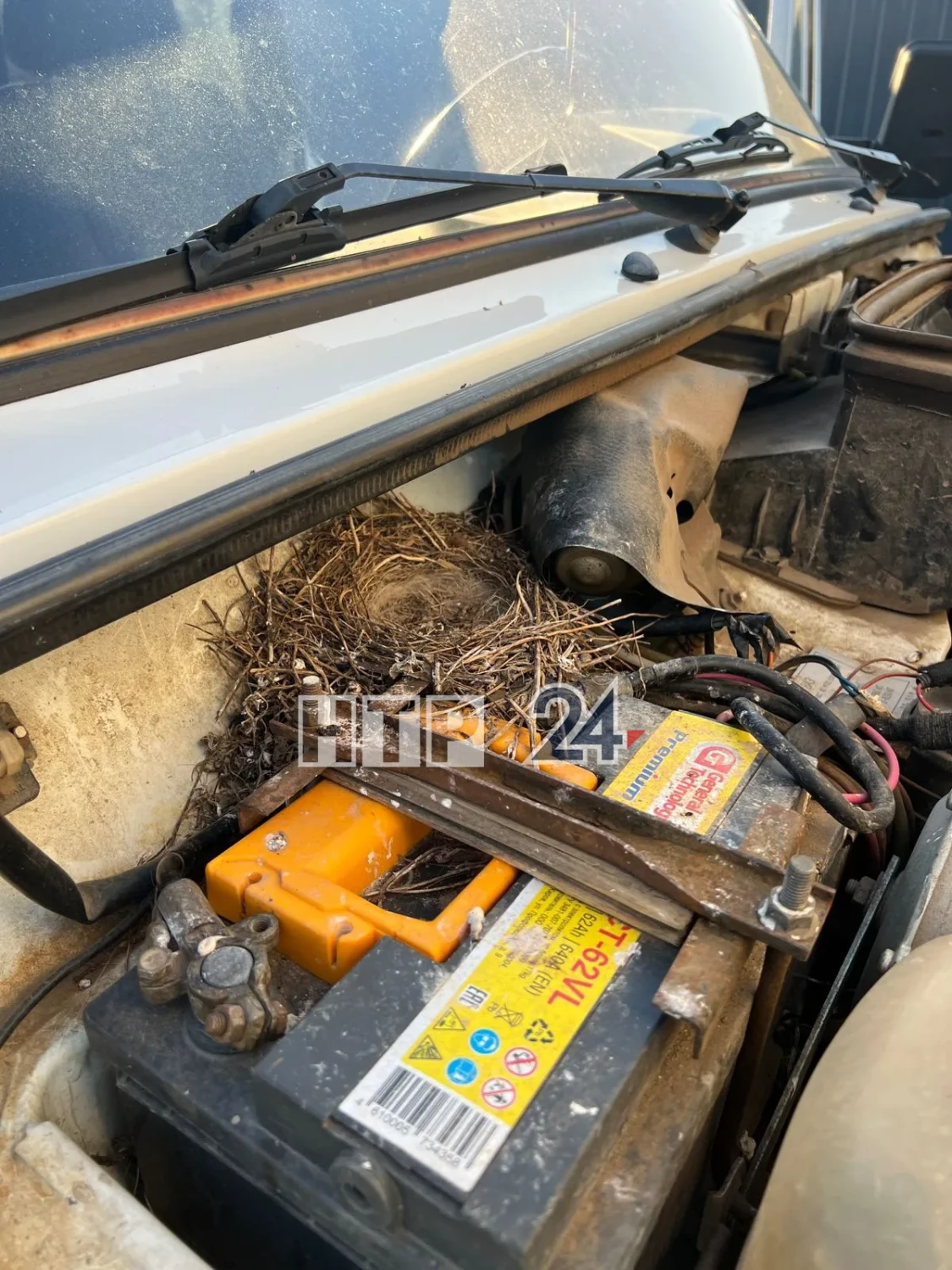 Супруги из Нижнекамска обнаружили необычную находку под капотом дачной «Нивы» — аккуратно свитое птичье гнездо.