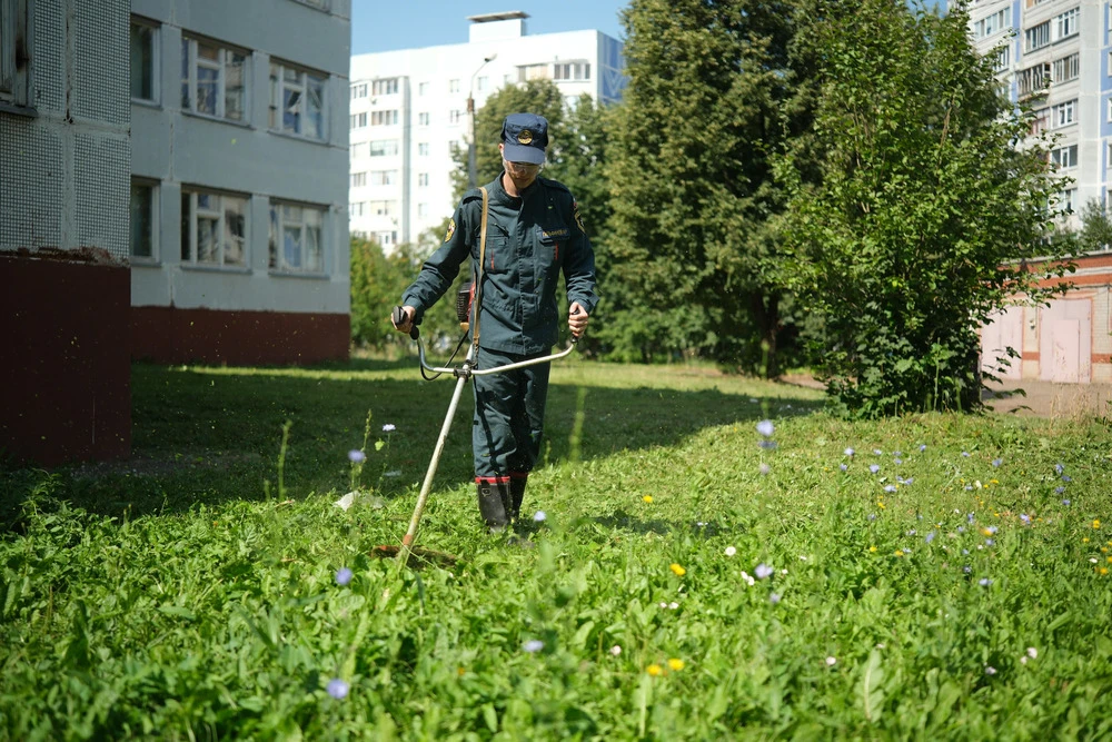 Сотрудники нижнекамского филиала управления договорных подразделений ФПС ГПС по РТ вместе с учениками лицея привели в порядок пришкольную территорию. Особую сложность представляли участки с густой растительностью, где невозможно было использовать технику.